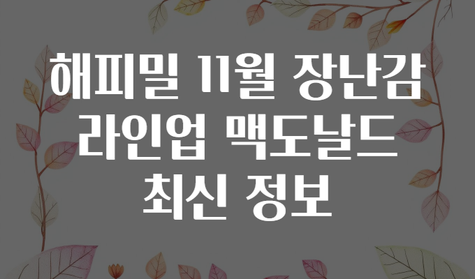 11์์๋ ๋งฅ๋๋ ๋ ํดํผ๋ฐ์ ์์ด๋ค๋ฟ ์๋๋ผ ์ด๋ฆฐ ์์ ์ถ์ต์ ์ํํ๋ ์ด๋ฅธ๋ค์๊ฒ๋ ํฐ ๊ธฐ๋๋ฅผ ๋ชจ์ผ๊ณ ์์ฃ ! ๐ ์ด๋ฒ ๋ฌ์ ์ด๋ค ์๋ก์ด ์ฅ๋๊ฐ ๋ผ์ธ์ ์ด ์ถ์๋์์์ง ๊ถ๊ธํ์ง ์์ผ์ ๊ฐ์?๐ฒ ์ค๋์ 11์ ํดํผ๋ฐ ์ฅ๋๊ฐ ์ต์ ๋ผ์ธ์ ์ ๋น๋กฏํด ๊ตฌ๋งค ๊ฟํ, ์ปฌ๋ ์ ๊ด๋ฆฌ๋ฒ, ๊ทธ๋ฆฌ๊ณ ํดํผ๋ฐ์ ๋์ฑ ์ฌ๋ฏธ์๊ฒ ์ฆ๊ธฐ๋ ๋ฐฉ๋ฒ๊น์ง ๋ชจ๋ ์๋ ค๋๋ฆด๊ฒ์! ๐โจ